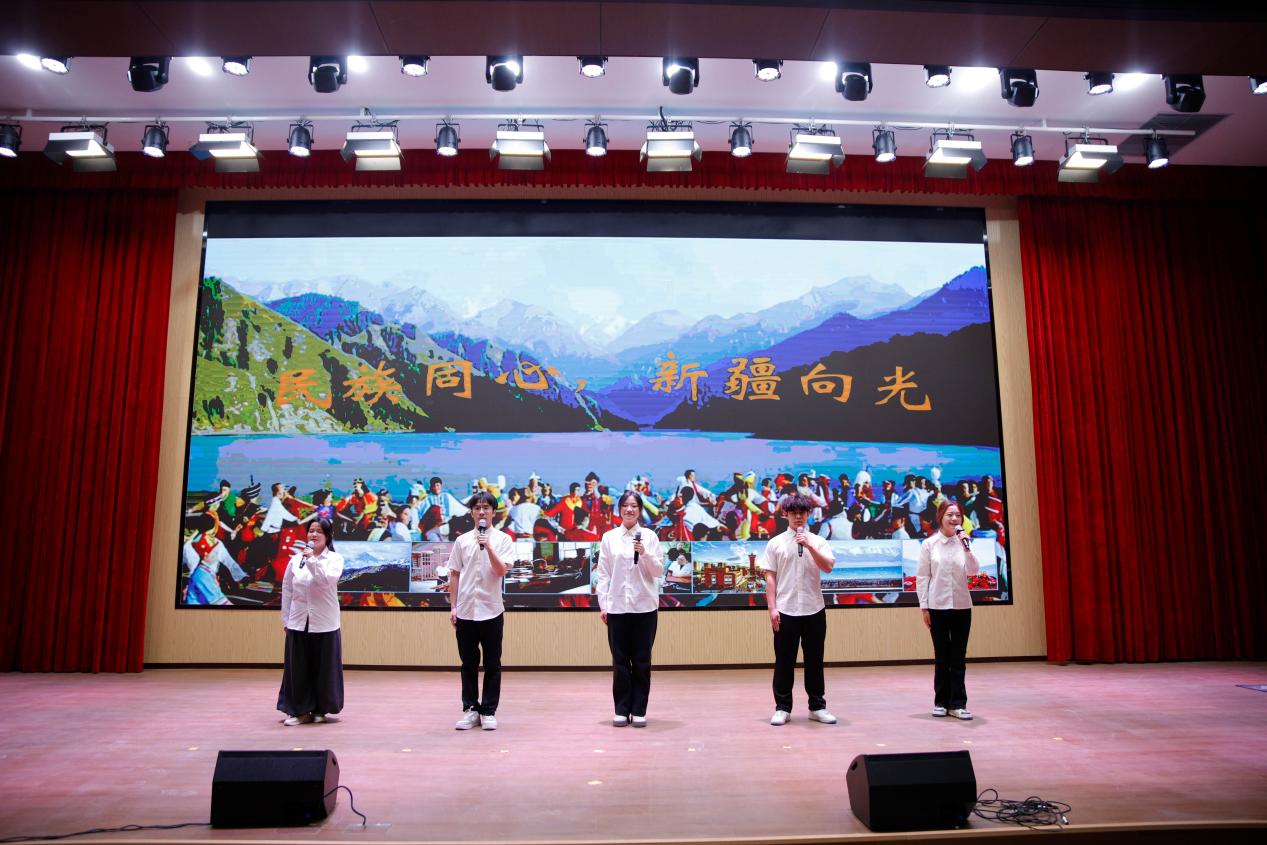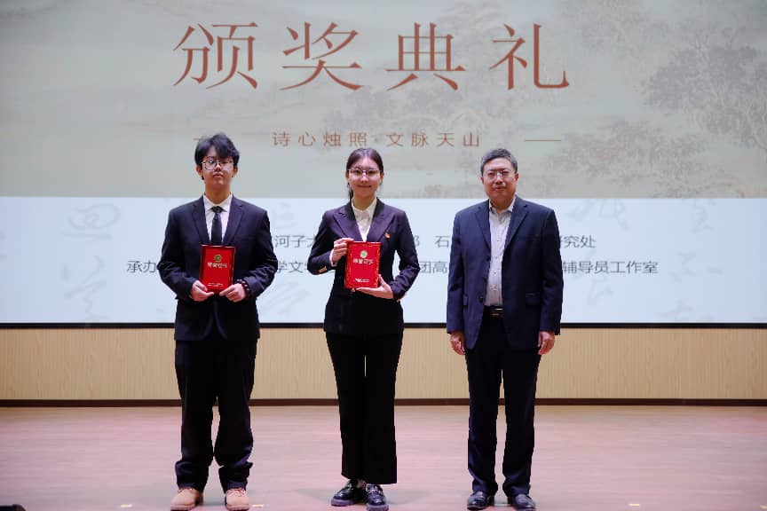 决赛现场,选手们以声传情,深情演绎了一系列跨越时空的经典作品,从《岳阳楼记》《将进酒》的磅礴气势到《祖国啊,我亲爱的祖国》《年轻的城》的赤子情怀,从集体朗诵《新疆,向世界敞开胸怀》的地域豪情到多民族合诵《我在一颗石榴里看见我的祖国》的团结深情,每一段表演都深深感染着在场观众;音乐系学子的声乐独唱《天山醉明月》更以动人旋律将现场气氛推向高潮。经过专业评审,活动最终评选出各级奖项,在颁奖仪式上对表现卓越的学子予以表彰,并向所有参赛选手赠送了本次活动的原创入围作品诗集。